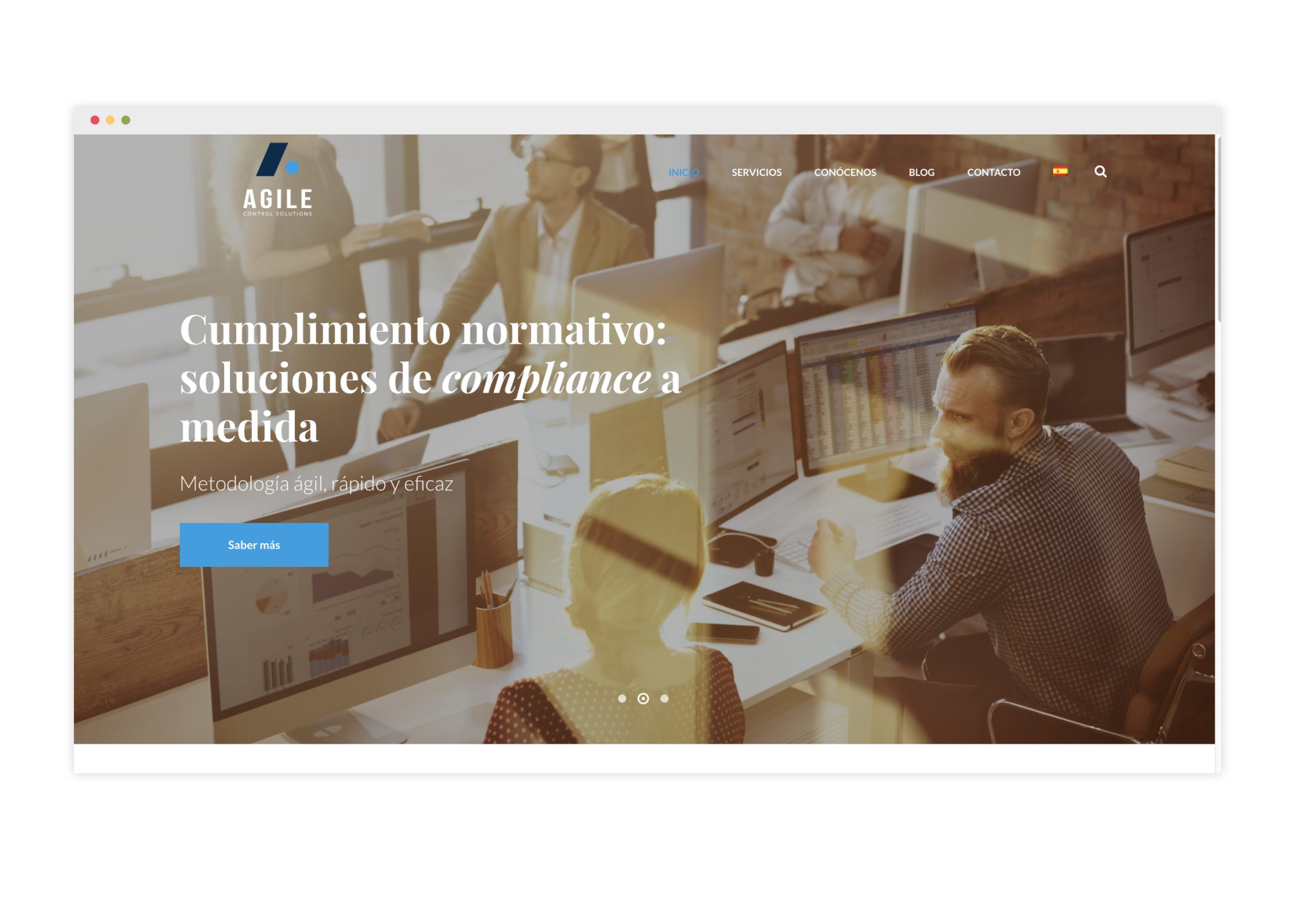 Nos basamos en la identidad corporativa y el logo de Agile Control Solutions para elaborar el diseño de las partes principales de la web. Con este diseño inteligente y 100% personalizado se refuerza la identidad de la marca de nuestro cliente.