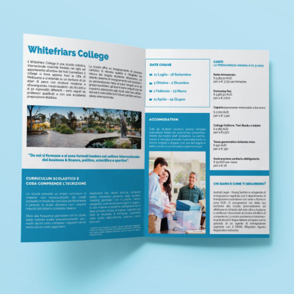 En factoryfy hemos tenido la oportunidad de realizar un proyecto innovador, comenzando desde sus cimientos, con el logotipo, pasando por la papelería corporativa, más tarde realizamos su web y ahora hemos concluido con un díptico para esta asesoría altamente especializada en conseguir que empresas y particulares puedan migrar a Australia para trabajar, estudiar o desarrollar negocios.