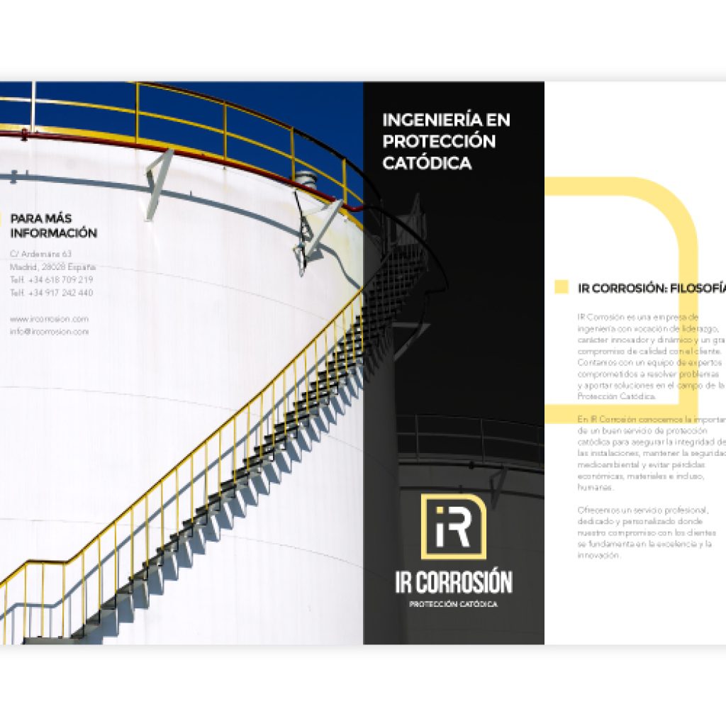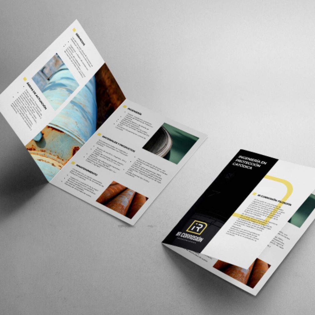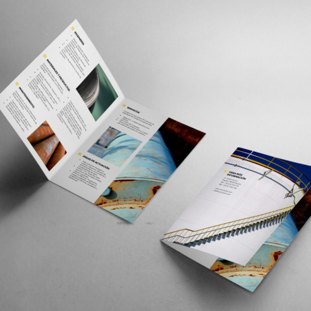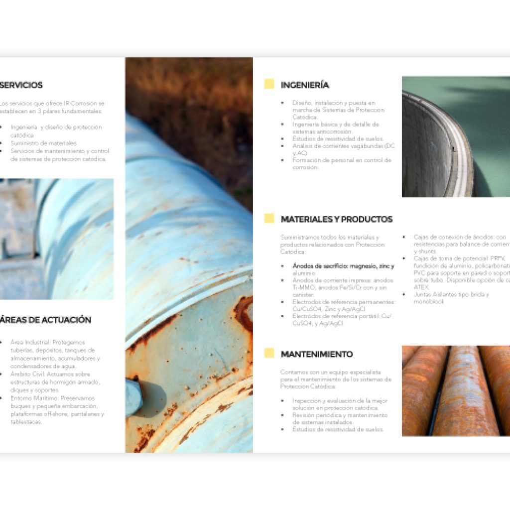 En esta ocasión el cliente se decanto por diseñar un díptico en vez de un flyer, como herramienta comercial para explicar su servicio de ingeniería y consultoría en protección catódica.