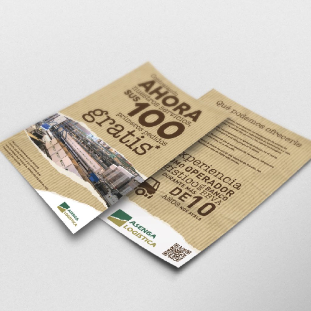 En una cara, se opto por poner una oferta de los 100 primeros productos gratis, y en la otra se reservó el espacio para presentar la empresa y sus ventajas.