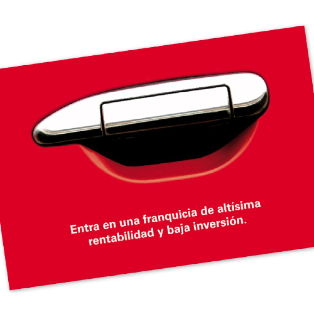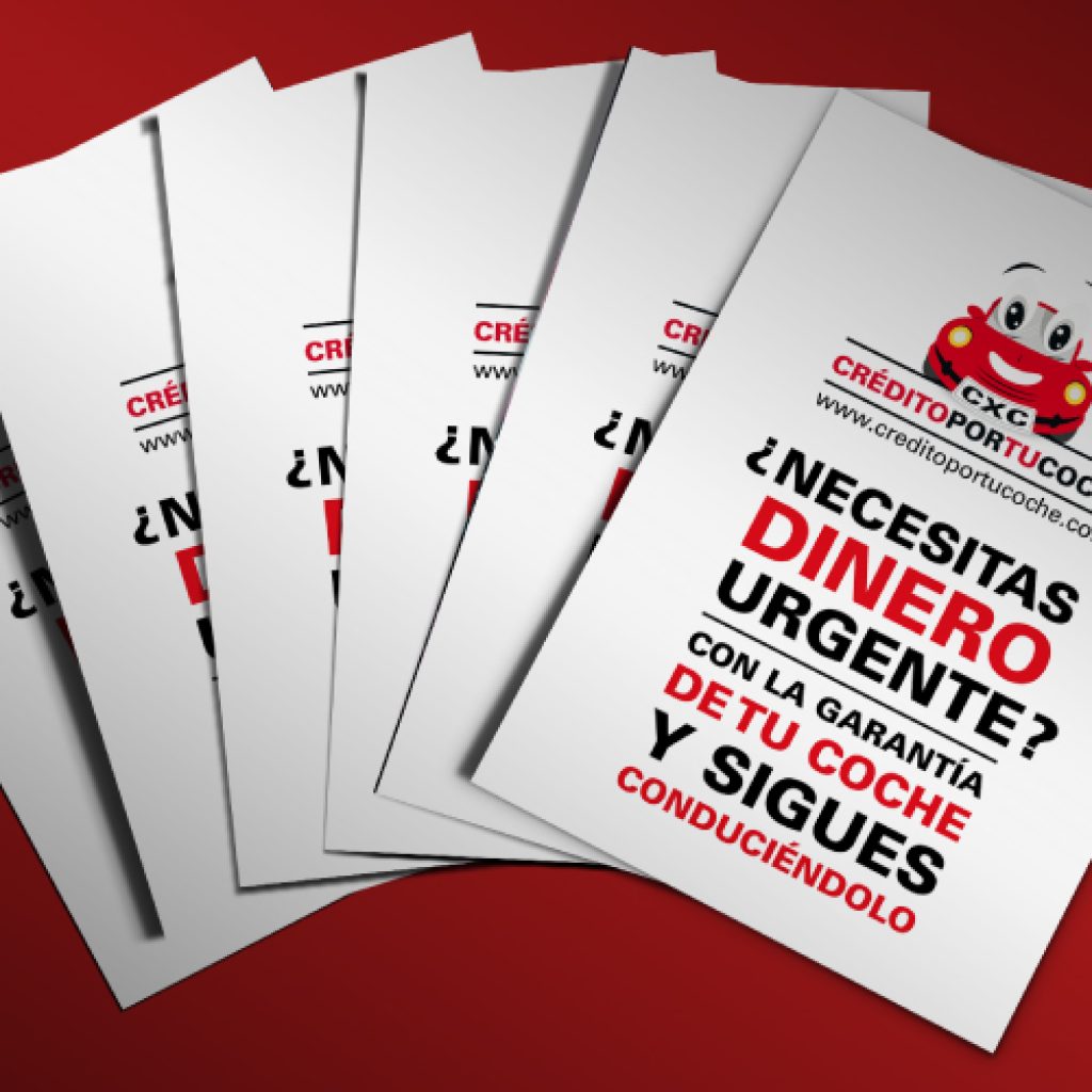 Diseñamos los flyers para promocionar una franquicia financiera. El equipo de factoryfy optó por utilizar para los diseños el rojo corporativo de la empresa. En el primer ejemplo podemos ver un flyer desarrollado a partir del logotipo que representa a la franquicia: un coche  simpático y sonriente capaz de solucionar los problemas financieros de los clientes. Para el segundo flyer, se optó por utilizar  una imagen de la puerta de un coche rojo que recuerda a la ilustración del logo corporativo, en este caso se utilizó un concepto mínimal con un mensaje muy directo y que al mismo tiempo invita al cliente a usar los servicios de la franquicia. Un frase que deja ver en pocas palabras las características de la empresa.